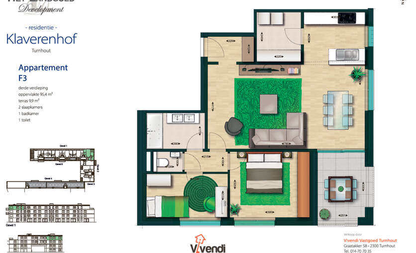 Op de derde etage bevindt zich dit recente, lichtrijke en ruime appartement van 95 m². Het omvat een inkomhal, een ruime leefruimte met volledig geïnstalleerde eetkeuken, een praktische wasplaats, een terras van 10 m², 2 slaapkamers (13 m² en 9 m²), een apart toilet en een badkamer uitgerust met een inloopdouche. Ondergronds beschikt u over een aparte berging en een privé-parkeerplaats.