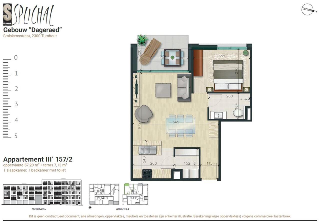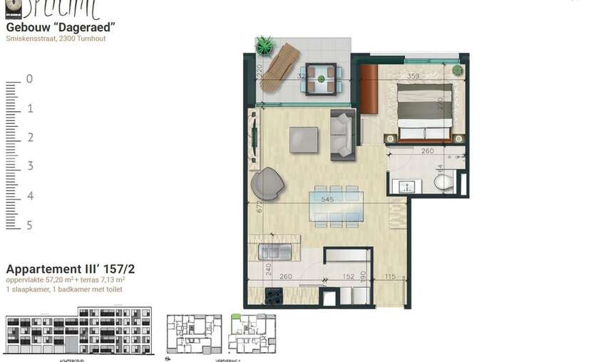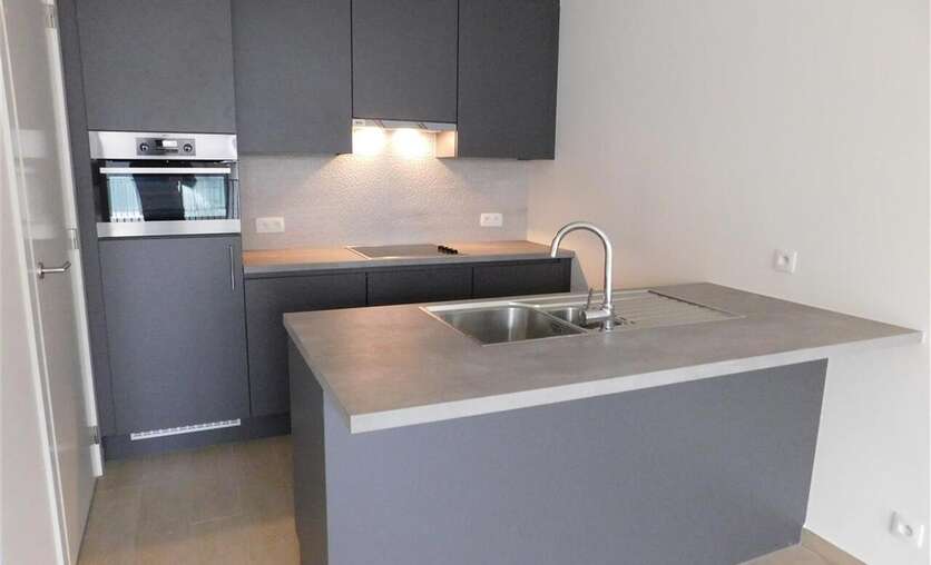 Via de inkomhal betreedt u de ruime en lichtrijke leefruimte, die naadloos aansluit op de volledig ingerichte eetkeuken met praktische berging. Zowel de leefruimte als de keuken bieden rechtstreekse toegang tot het aangename terras, ideaal om tot rust te komen. Verder beschikt het appartement over één comfortabele slaapkamer, een moderne badkamer met douche en toilet, 1 ondergrondse berging, 1 ondergrondse autostaanplaats en 1 afgesloten fietsenstalling.