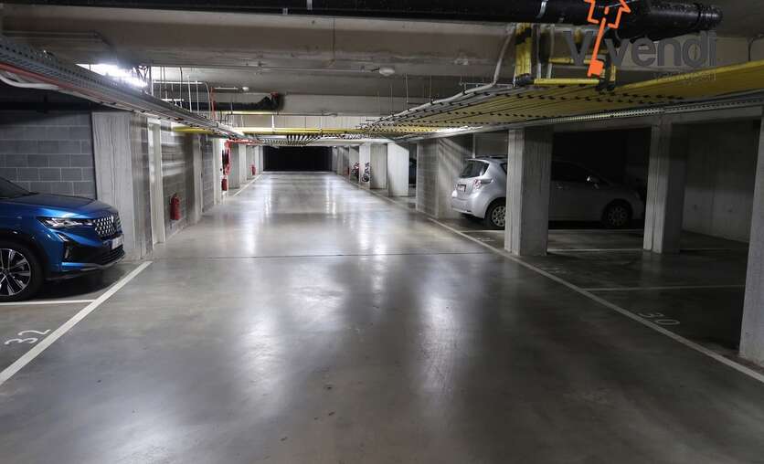 Ondergronds krijg je — inbegrepen in de prijs, jawel! 1 ruime parkeerplaats + 1 praktische berging.