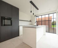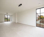 Een lichtrijke leefruimte met zicht op én toegang tot de private tuin