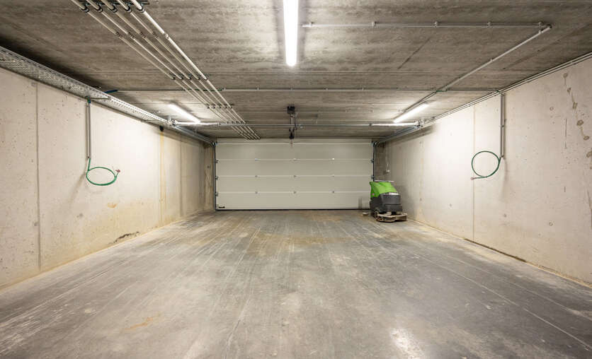 Indeling ondergronds; Dubbele, afgesloten garagebox, Aangrenzende berging, Toegang tot uw private lift.